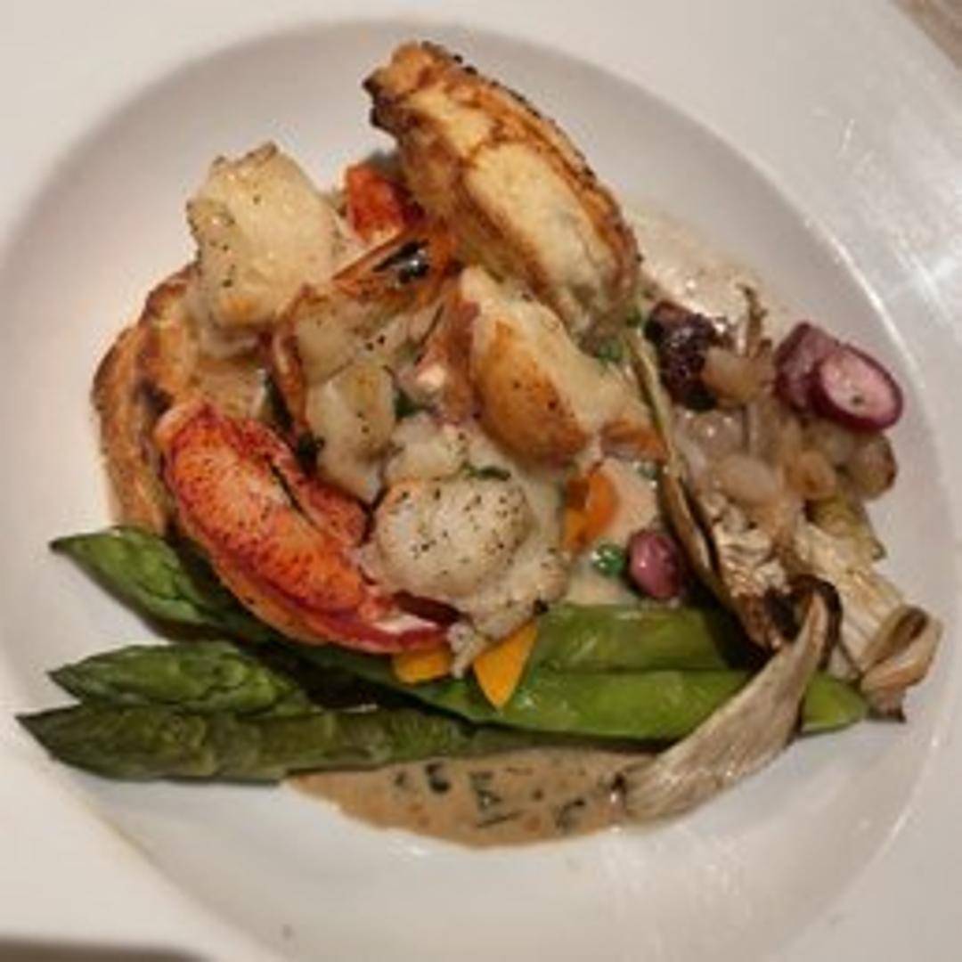 A decadent pot pie filled with generous chunks of succulent lobster meat, simmered in a creamy, sherry-infused sauce with garden vegetables, and baked under a flaky, golden-brown pastry crust.