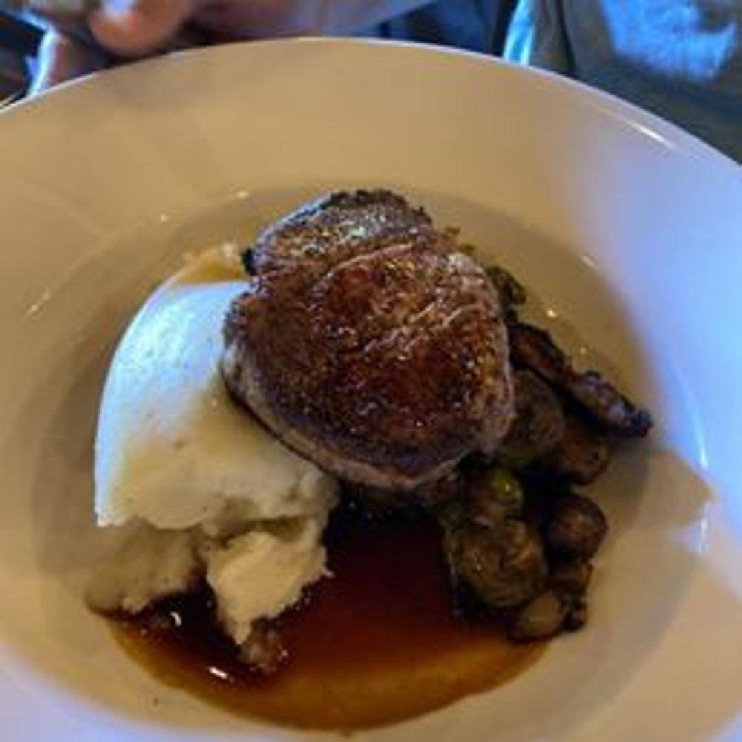 Tender and juicy Filet Mignon, cooked to your preferred temperature. Served with a classic preparation, featuring potato puree and seasonal vegetables. Enhanced with a rich sauce.