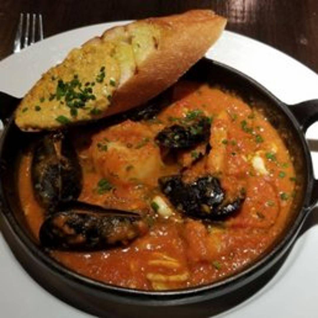 A classic Provençal seafood stew featuring a medley of fresh fish and shellfish in a saffron-infused tomato broth. Served with grilled baguette slices and rouille.