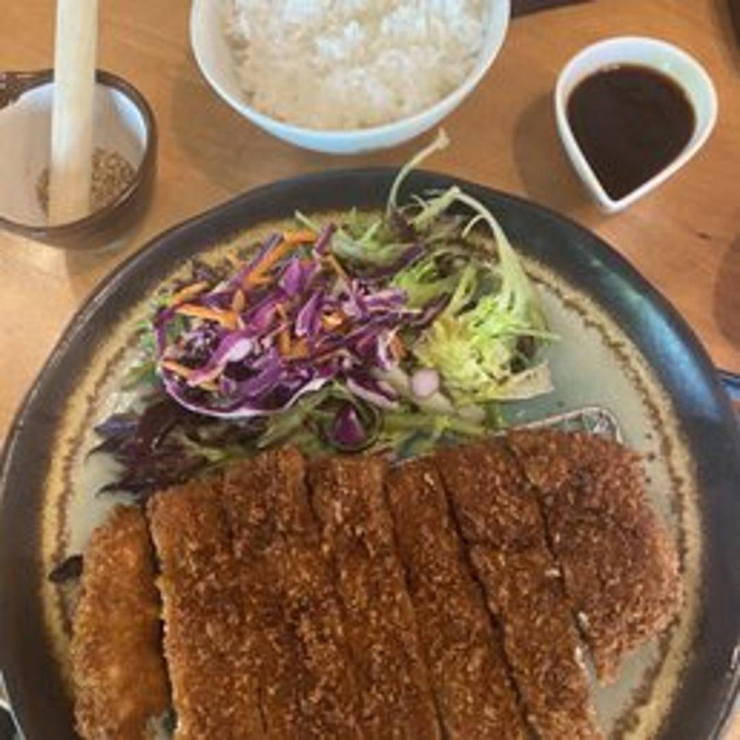 A deep-fried, breaded pork cutlet, typically served with tonkatsu sauce.