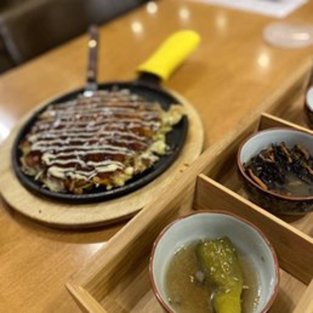 A type of Okonomiyaki, a savory pancake containing pork.