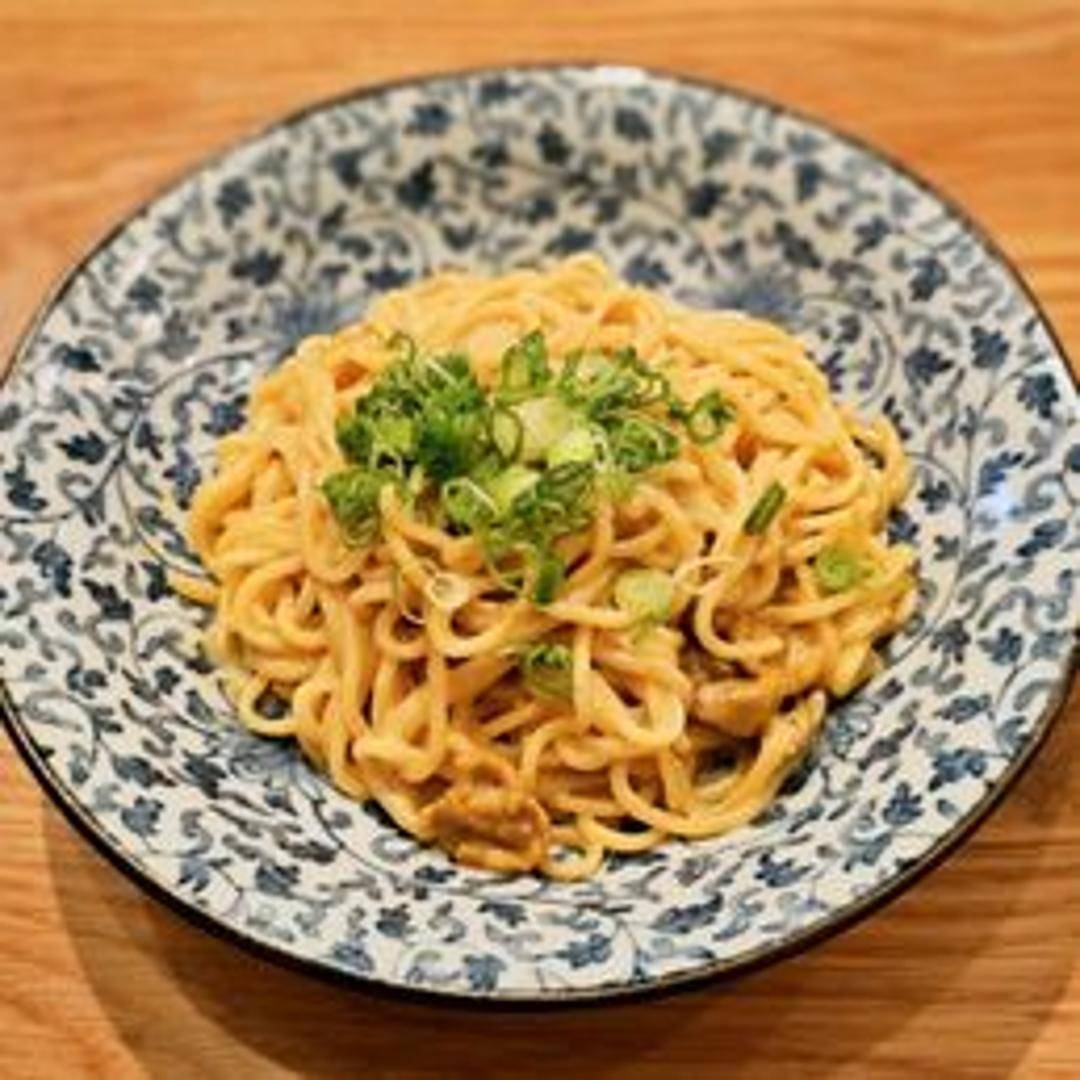 Pasta tossed in a creamy sauce made with fresh sea urchin (uni). The uni adds a rich, briny, and slightly sweet flavor to the dish. Often includes other ingredients such as butter, garlic, cream, and sake to enhance the flavor and create a luxurious texture. Garnished with nori seaweed or scallions.