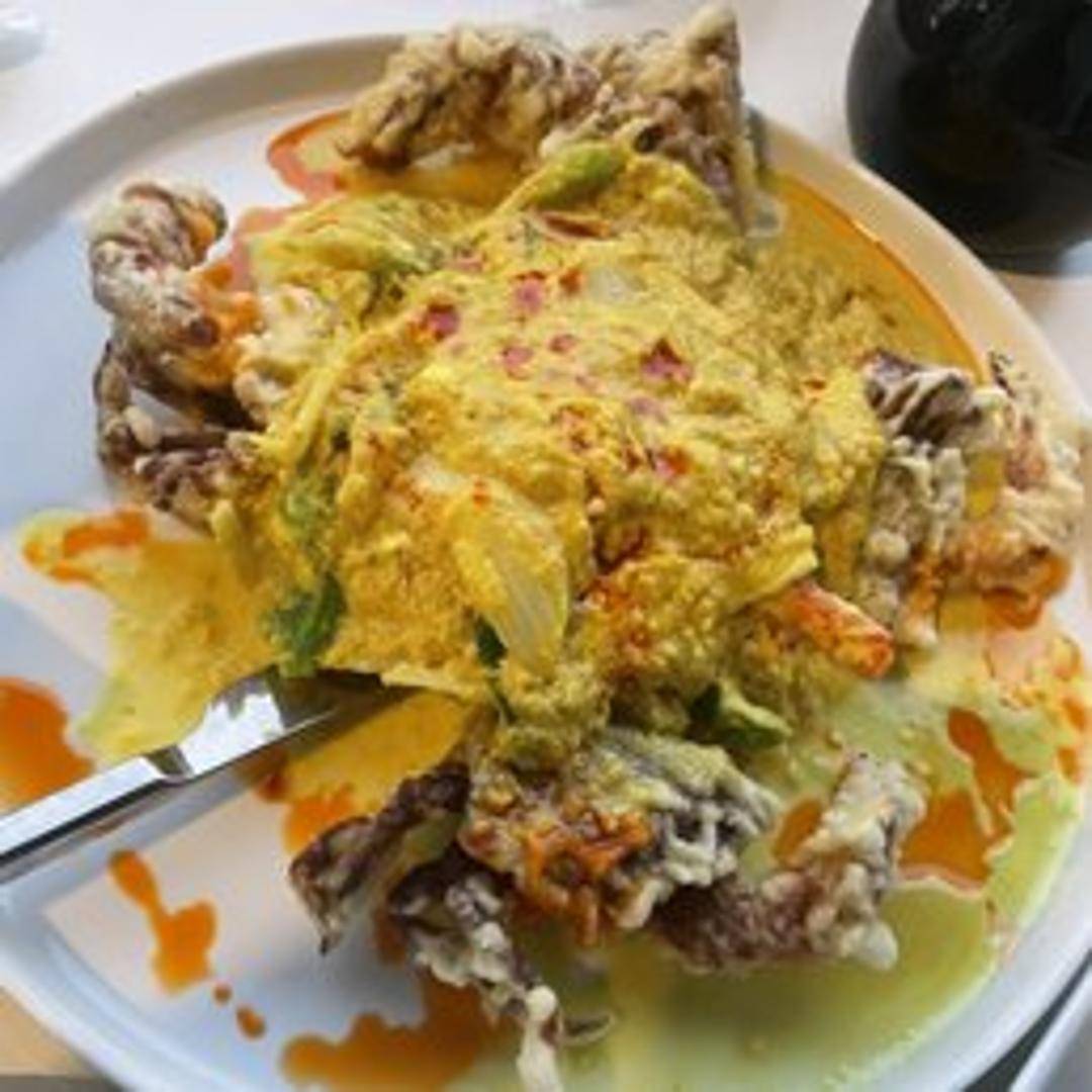 Lightly battered and fried soft shell crab, often seasoned with herbs and spices. Served with a complementary sauce. May be available as an appetizer or entree.
