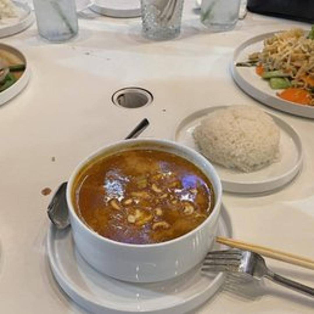 A mild and subtly sweet Thai curry influenced by Persian cuisine. Features a creamy coconut milk base, potatoes, onions, peanuts, and a blend of spices like cardamom, cinnamon, and cloves. Often includes your choice of protein (chicken, beef, pork, tofu, or shrimp). Served with steamed rice.