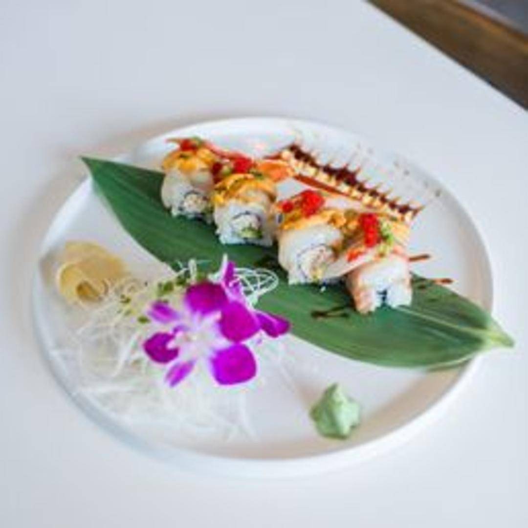 A specialty sushi roll featuring a unique combination of ingredients and flavors, crafted with precision and artistry by Osha Thai Kitchen & Sushi's chefs. Specific ingredients may vary.