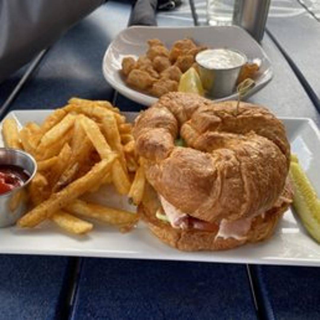 Smoked turkey breast piled high on toasted bread with lettuce, tomato, and your choice of spread. Served with choice of side.