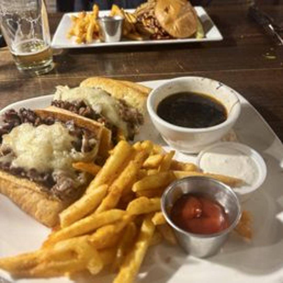 Grilled burger topped with BBQ sauce, crispy fried onions, cheddar cheese, lettuce and tomato. Served on a toasted bun with choice of side.
