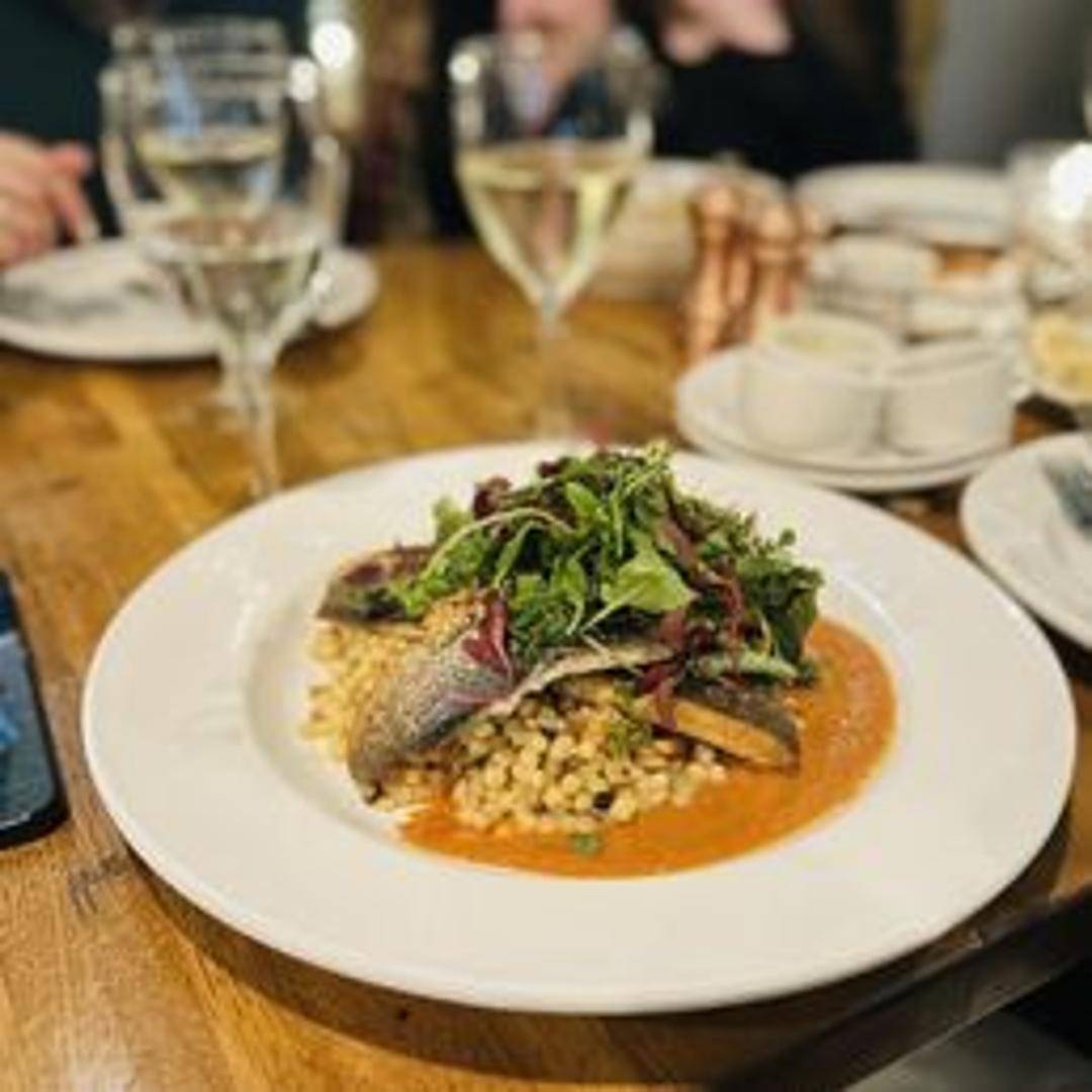 Pan-seared Mediterranean sea bass, served whole or filleted, with a lemon-herb sauce and seasonal vegetables.