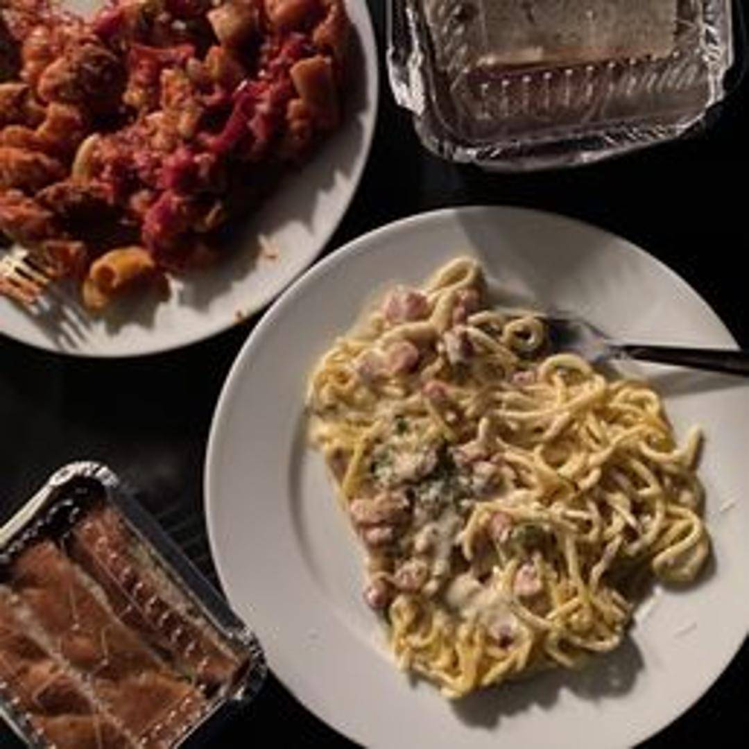 Hearty rigatoni pasta, known for its large, ridged tubes perfect for capturing sauce, served with a robust sauce featuring savory Italian sausage, often combined with tomatoes, herbs, and a touch of cream.