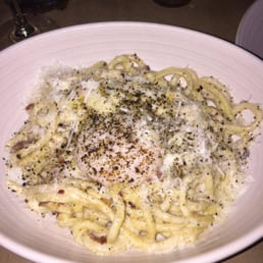 A rich and creamy pasta dish originating from Rome. Made with spaghetti (or other pasta), guanciale (cured pork cheek), eggs, Pecorino Romano cheese, and black pepper.