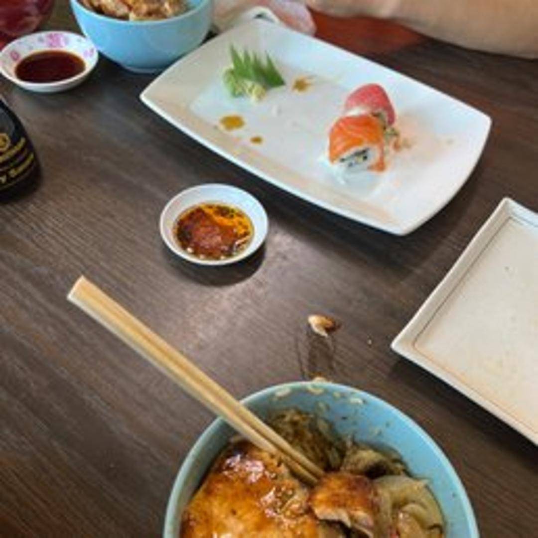 Fresh, premium cuts of tuna sashimi artfully arranged over a bed of seasoned sushi rice. Accompanied by seaweed salad, sliced avocado, edamame and a drizzle of flavorful soy-based sauce.
