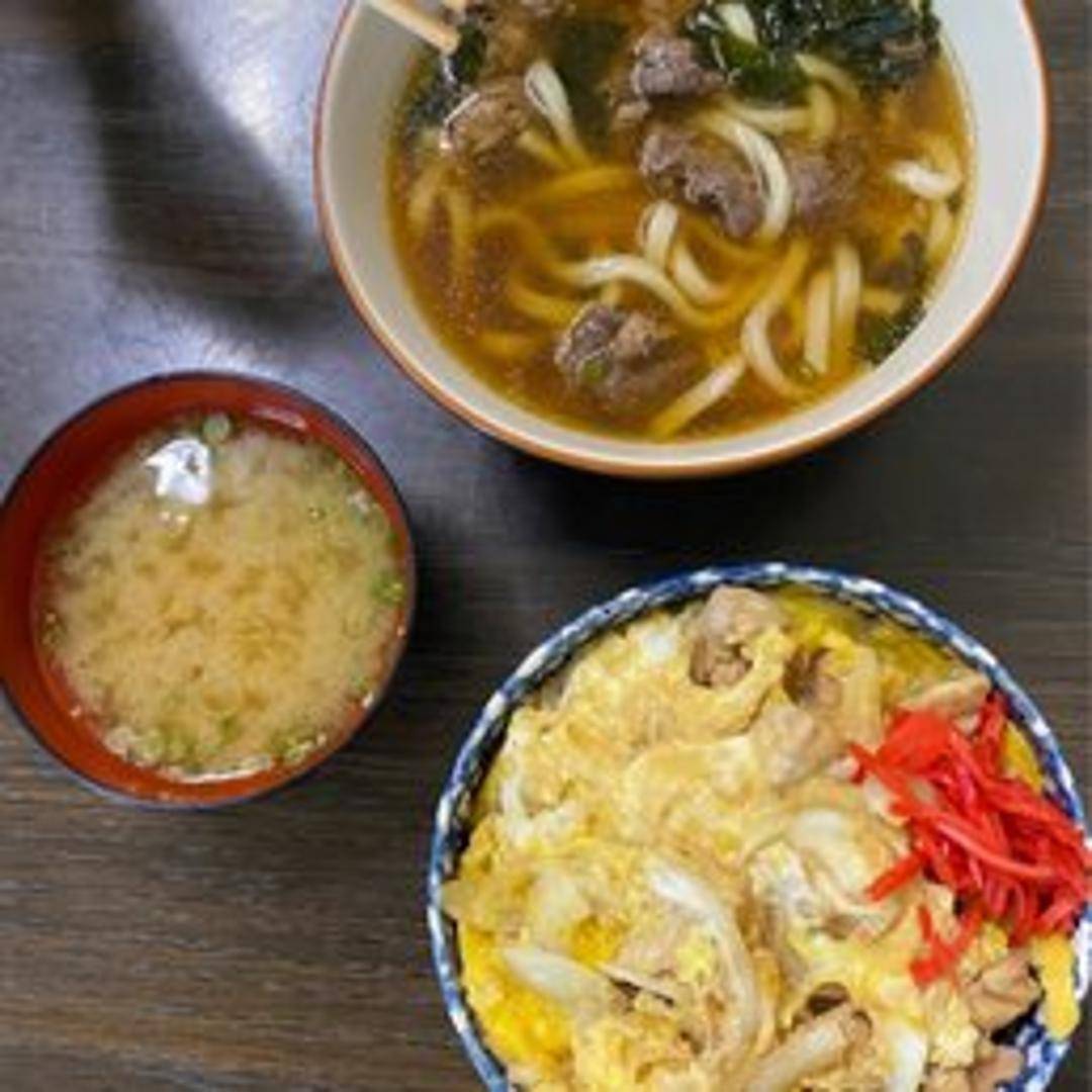 A flavorful and hearty noodle soup featuring thick, chewy udon noodles in a savory broth, topped with thinly sliced beef, scallions, and a sprinkle of sesame seeds.