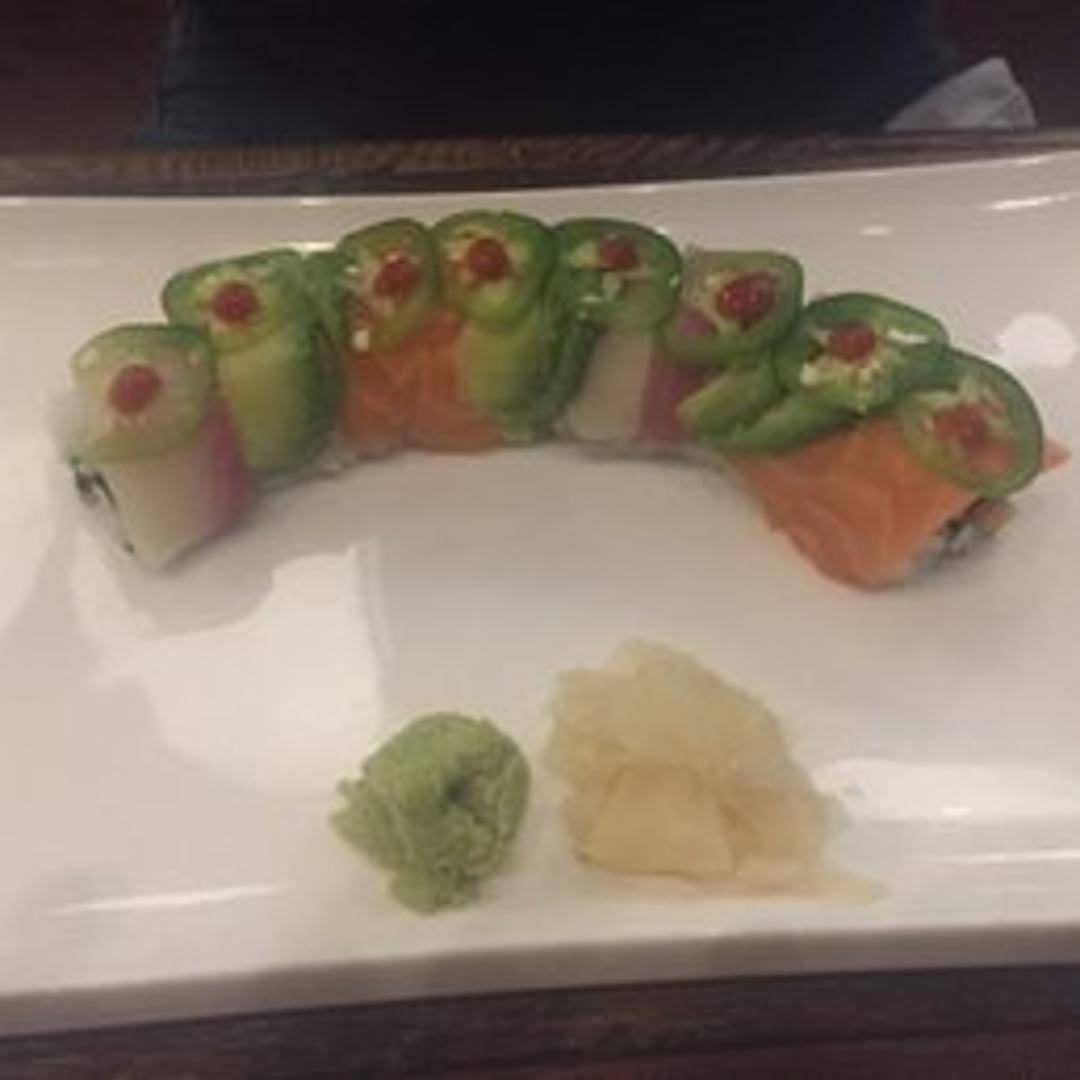 A flavorful sushi roll featuring [Specific ingredients – e.g., spicy tuna, avocado, cucumber, tempura flakes] wrapped in seaweed and rice. Topped with [Specific toppings – e.g., spicy mayo, eel sauce, sesame seeds].