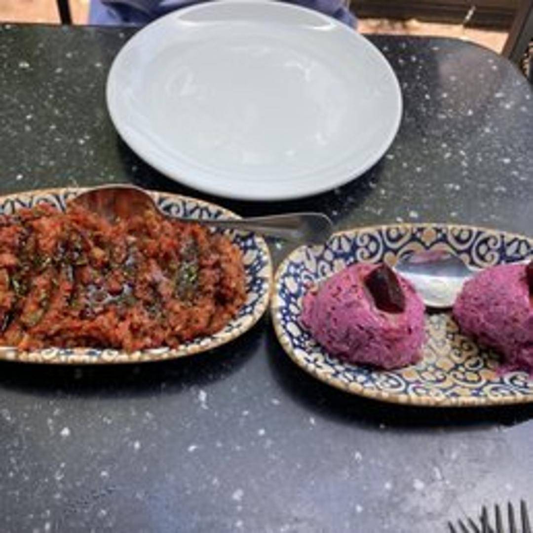 A vibrant and zesty Turkish salad-dip, Ezme is a finely diced medley of fresh tomatoes, cucumbers, green peppers, red onions, and parsley, enhanced with a spicy kick from red pepper paste and a tangy dressing of pomegranate molasses and olive oil. Its refreshing and piquant flavors make it an essential accompaniment to grilled meats or as a flavorful appetizer.