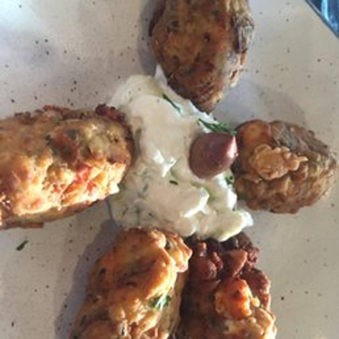 Crispy and light fritters made from fresh shredded zucchini, blended with aromatic herbs, savory feta cheese, and sometimes a hint of mint or dill. These golden-fried delights offer a delightful crunch on the outside and a tender, flavorful interior, perfect as an appetizer.