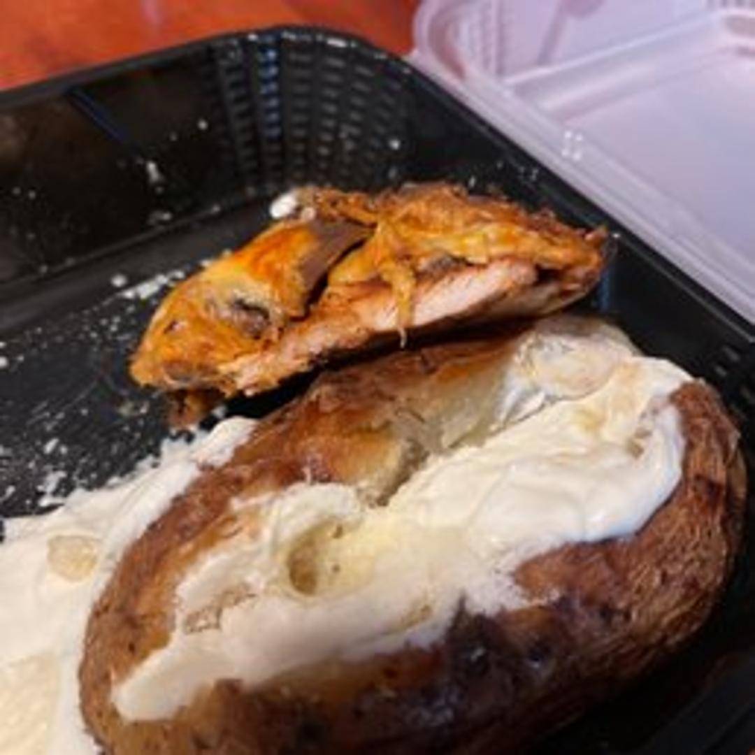 Grilled chicken breast topped with sauteed mushrooms, bacon, melted Monterey Jack and Cheddar cheese. Served with honey mustard sauce and your choice of side.