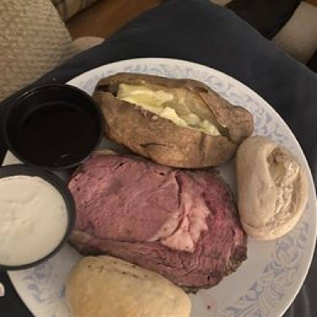 Slow-roasted prime rib, seasoned and cooked to a tender, juicy perfection. Served with au jus and your choice of two sides. Available in limited quantities.