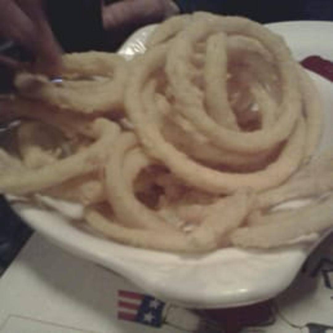 A generous basket of crispy, golden-brown onion rings made fresh in-house. Thick-cut onions are battered and fried to perfection, offering a satisfying crunch with a sweet, savory onion flavor. Served hot.