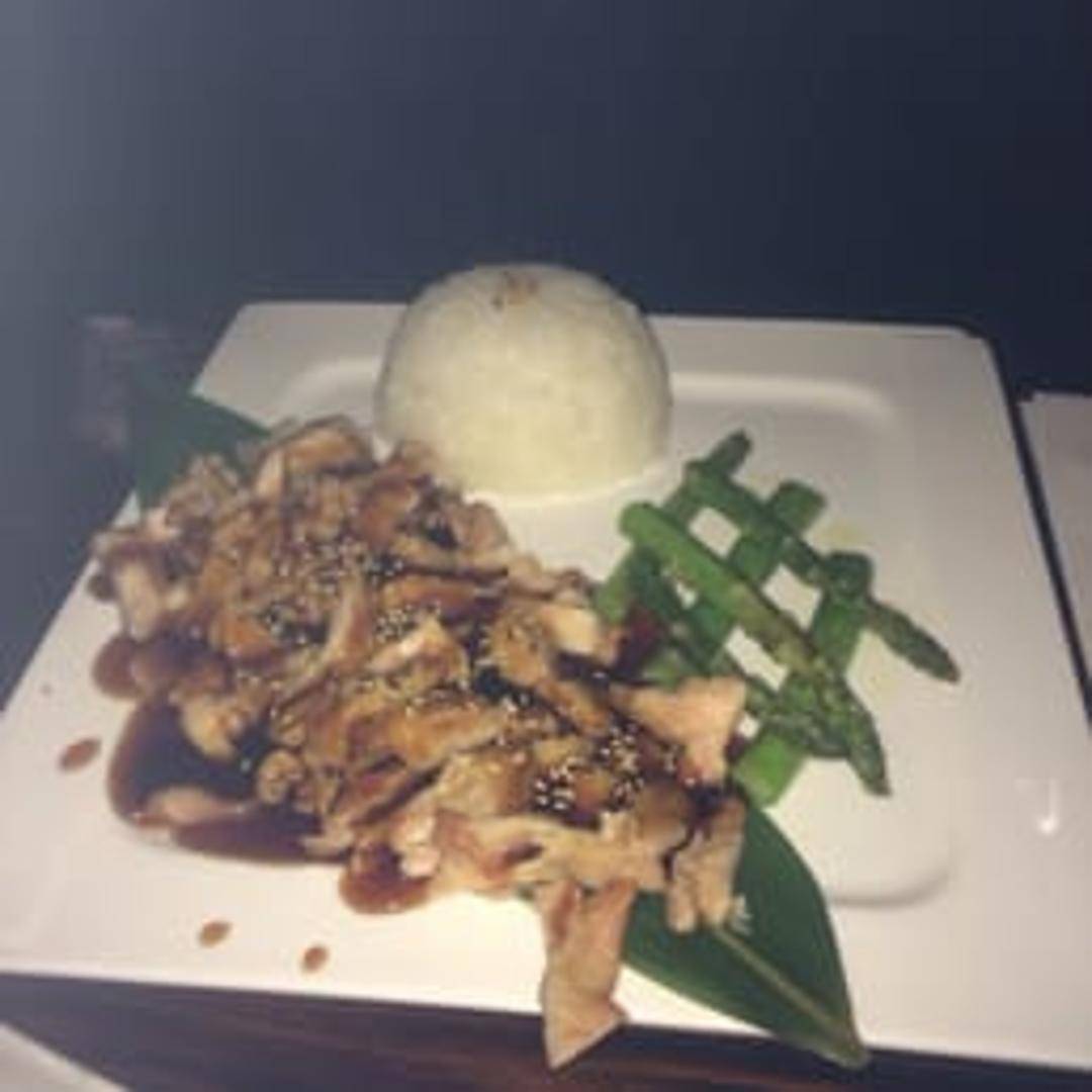 Grilled chicken glazed with a sweet and savory teriyaki sauce. Served with a side of steamed rice and vegetables.
