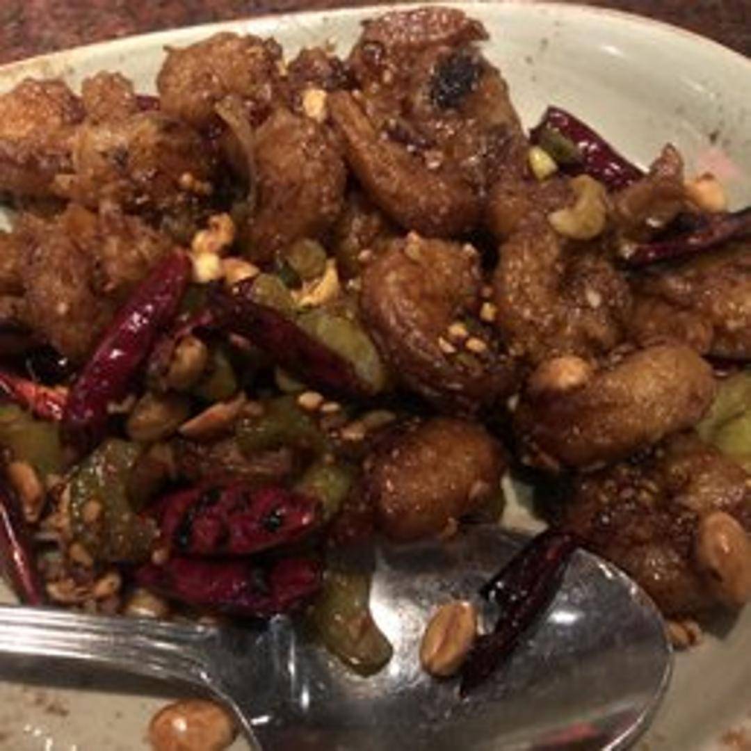 Succulent shrimp stir-fried with peanuts, chili peppers, scallions, and a savory Kung Pao sauce. A classic spicy and flavorful dish.
