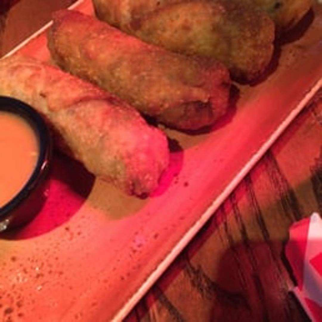 Crispy, golden-brown egg rolls filled with julienned vegetables and savory pork. Served with a side of sweet chili dipping sauce.