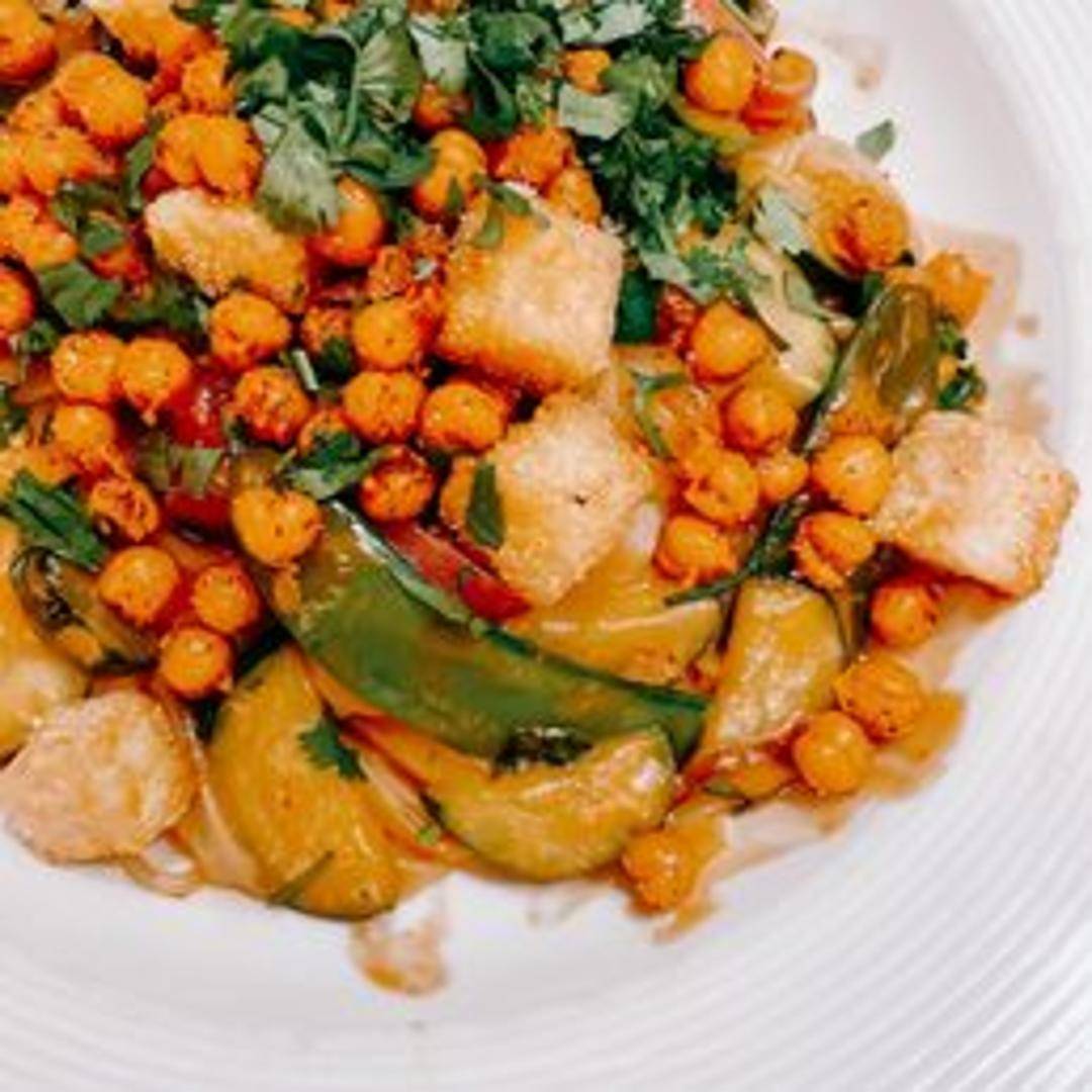 Authentic Thai noodles tossed in a rich and creamy peanut sauce. Adorned with vibrant julienned vegetables, bean sprouts, and crushed peanuts. Option to add grilled chicken, shrimp, or tofu.