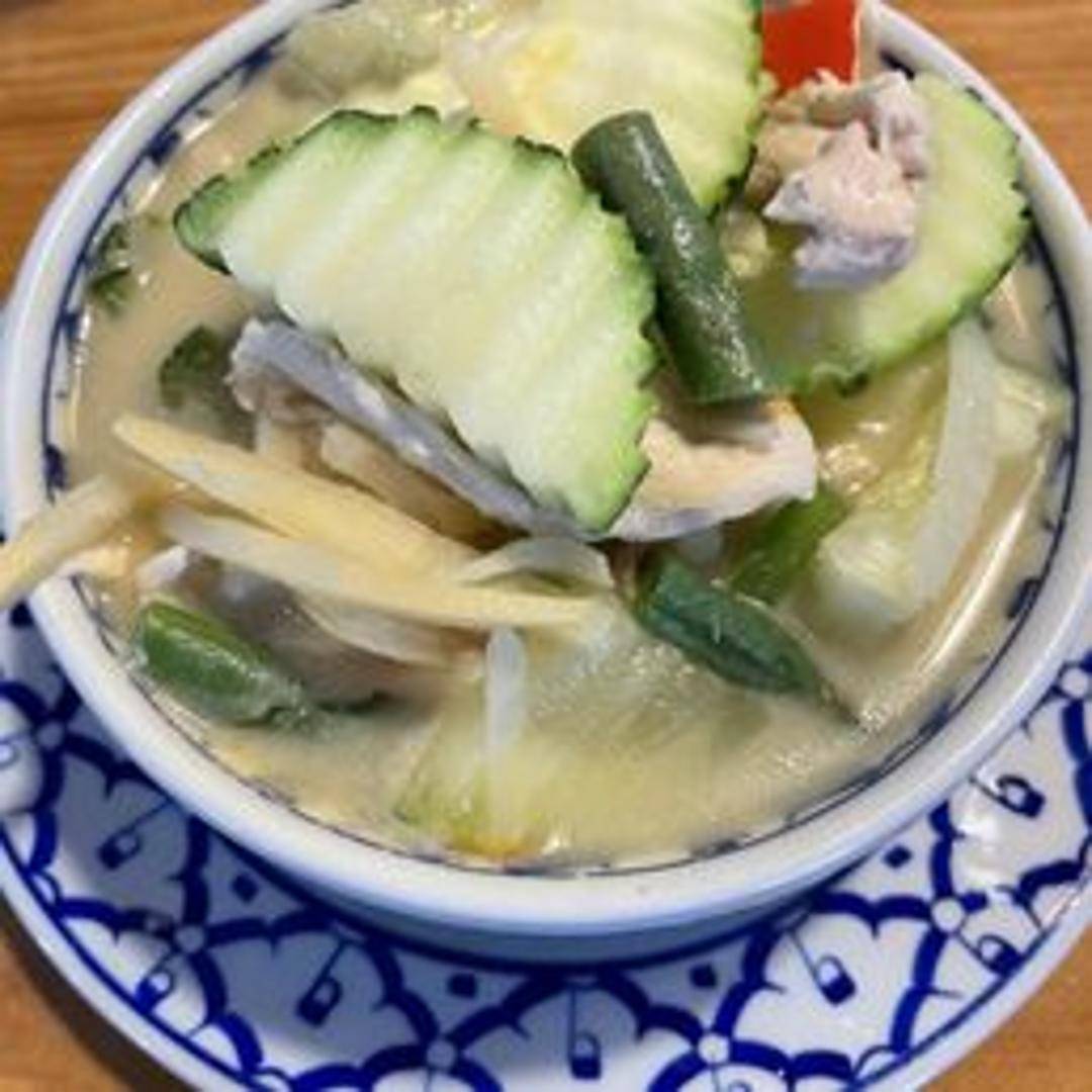 A vibrant and moderately spicy Thai curry made with green chilies, coconut milk, bamboo shoots, bell peppers, basil, and green curry paste. Offers a fresh and herbaceous flavor profile, typically served with your choice of protein and vegetables.