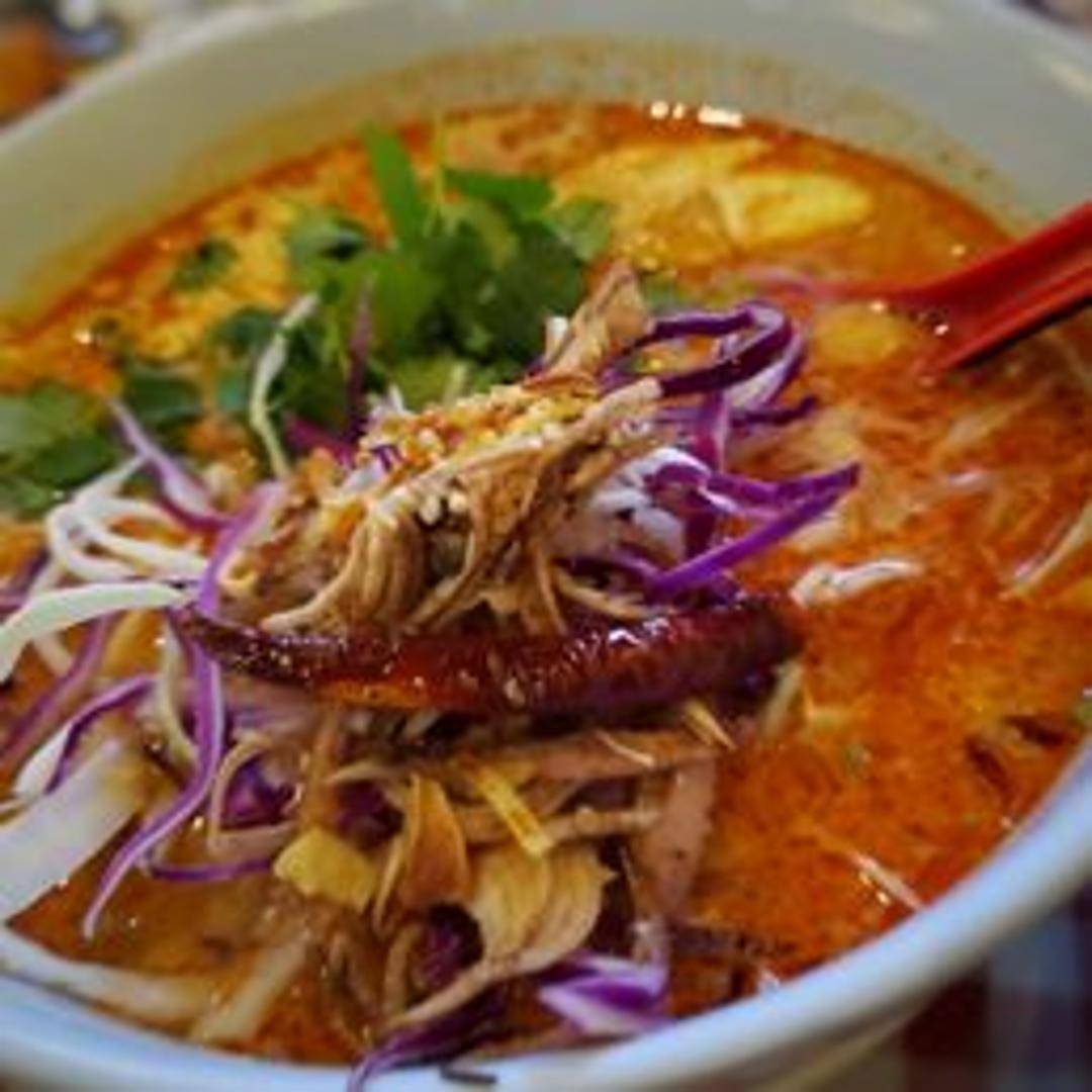 A beloved Laotian specialty, Mee Kathi is a rich and comforting coconut milk-based red curry noodle soup. Fragrant rice vermicelli noodles are immersed in a creamy, subtly spicy broth brimming with ground pork or chicken, crisp bean sprouts, and fresh herbs. A truly authentic and soul-satisfying dish.