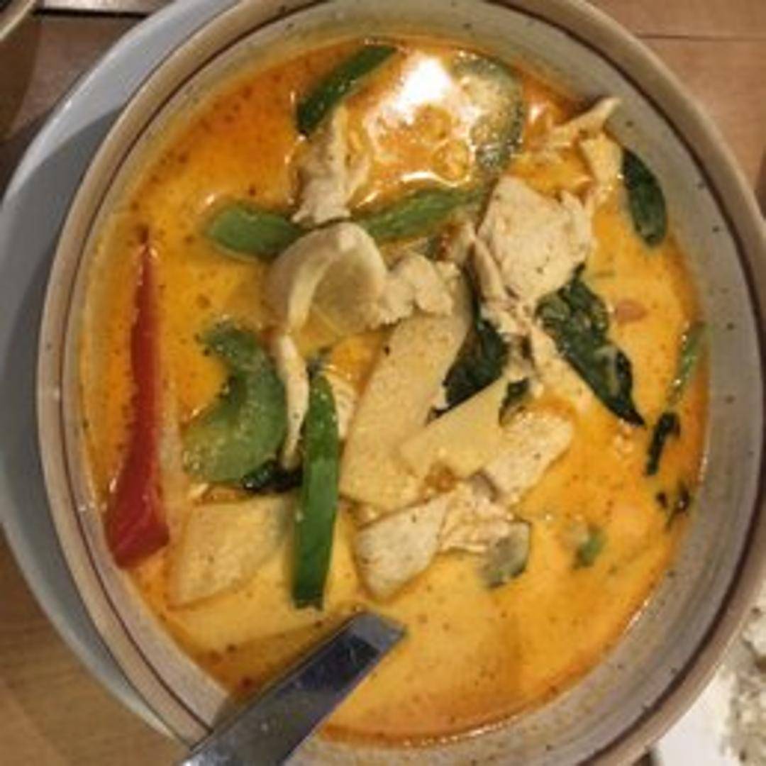 Ignite your palate with our fiery Red Curry, a quintessential Thai and Laotian dish known for its bold flavor and vibrant hue. Prepared with a rich paste of red chilies, galangal, lemongrass, and kaffir lime, simmered in creamy coconut milk. This aromatic curry is typically brimming with bamboo shoots, bell peppers, and fresh basil, offering a perfect blend of spicy, savory, and subtly sweet notes.