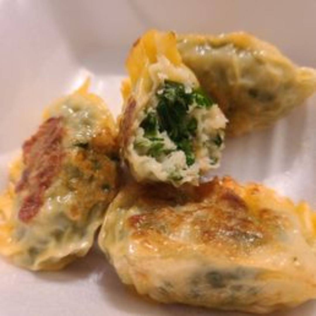 Savory dumplings filled with a delicious mixture of fresh chives, ground meat (typically pork), and aromatic seasonings. The dumplings are carefully pan-fried to a golden-brown crisp on one side, while remaining soft and chewy on the other. Served hot with a dipping sauce, often soy sauce-based.