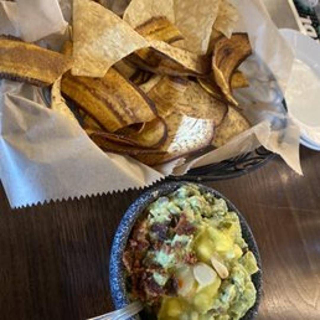 Experience the vibrant flavors of our freshly prepared guacamole, crafted daily with ripe, creamy avocados. Blended with finely chopped red onion, cilantro, a hint of jalapeño for a subtle kick, and a squeeze of fresh lime juice, it's served alongside a generous portion of warm, crispy tortilla chips for the perfect dip.