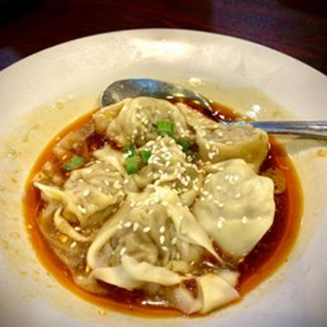Delicate wontons, typically filled with a savory seasoned pork or shrimp mixture, meticulously boiled or steamed until tender. These delightful parcels are then generously drizzled with a vibrant, aromatic chili oil-based sauce, delivering a delicious kick of heat and umami, often garnished with sesame seeds or fresh scallions.