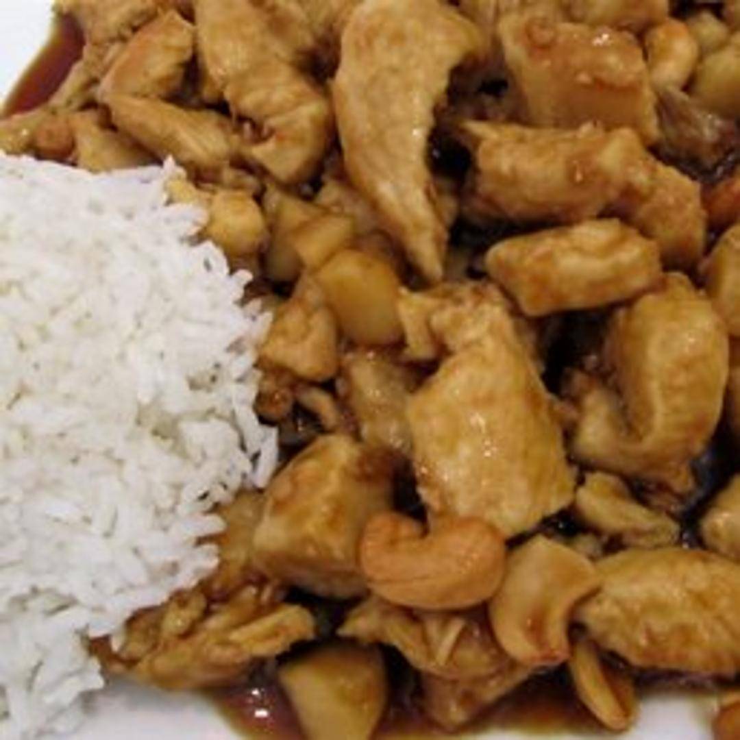 A beloved Chinese-American classic, our Cashew Chicken features generous portions of tender, diced white meat chicken stir-fried to perfection with crisp celery, vibrant bell peppers, and savory onions. Finished with an abundance of crunchy cashews and coated in a rich, flavorful brown sauce.