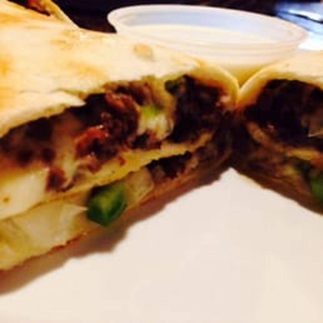 A panino inspired by the classic Philly cheesesteak. Filled with thinly sliced steak, grilled onions, peppers, and melted cheese.