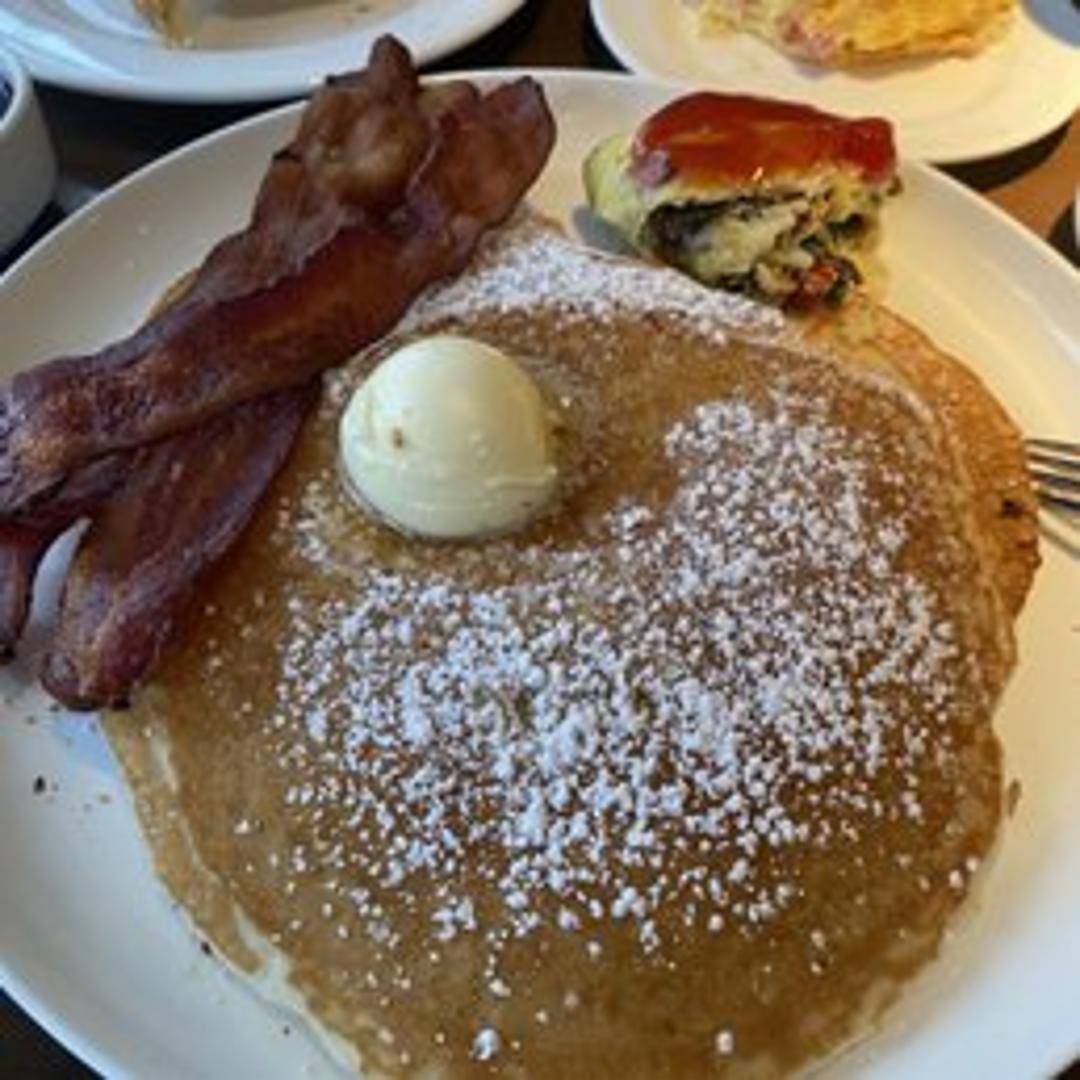 Fluffy, golden brown pancakes served with whipped butter and warm maple syrup. Option to add fresh berries or chocolate chips for an additional charge.