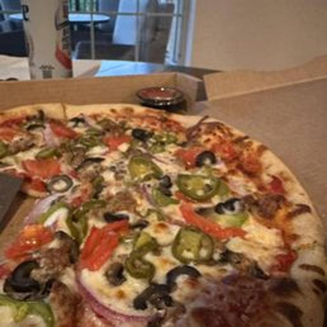 Spicy Italian sausage links, grilled or pan-fried, served on a hoagie roll with peppers and onions.