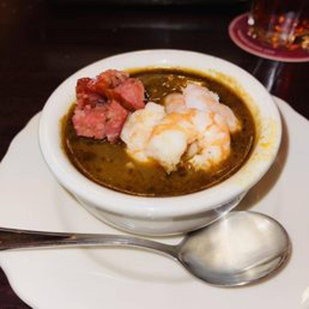 A rich and flavorful Louisiana-style gumbo featuring spicy Andouille sausage and a variety of fresh seafood. Prepared in a dark roux base with traditional gumbo vegetables and spices, served over rice.