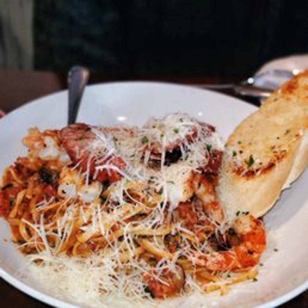 A vibrant celebration of New Orleans flavors featuring tender linguine tossed with succulent sautéed shrimp, crawfish, andouille sausage, and a rich, spicy Creole cream sauce, finished with bell peppers and onions.