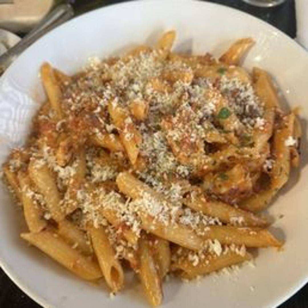 Penne pasta tossed in a creamy tomato sauce with a touch of vodka, finished with Parmesan cheese and a sprinkle of red pepper flakes.