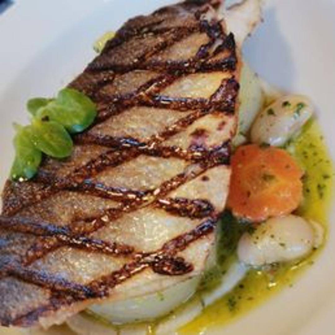 A delicate and flaky whole sea bass, known for its mild, sweet flavor and firm white flesh. Expertly prepared, often pan-seared or roasted whole, to highlight its natural exquisite taste.