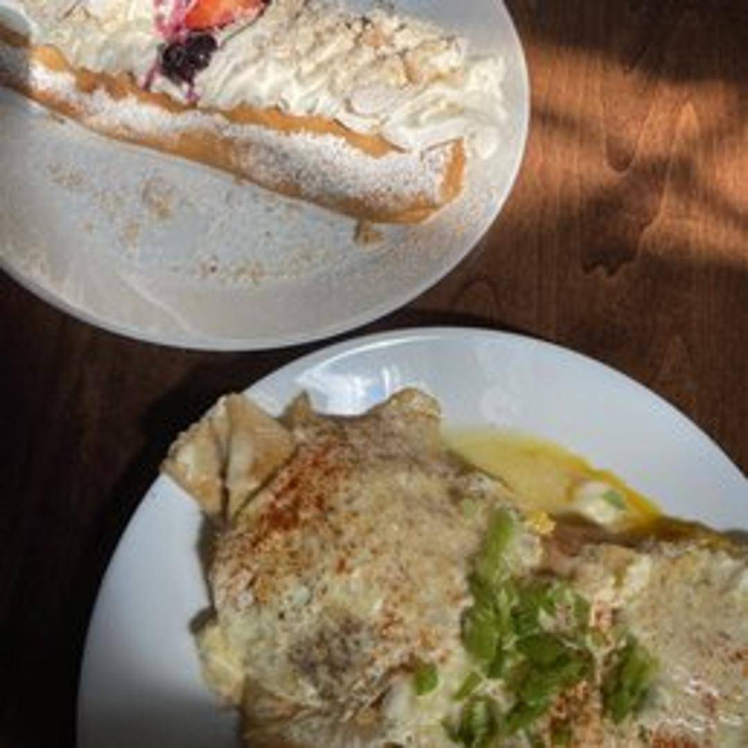 Sweet crepe filled with creamy cheesecake filling and topped with your choice of fresh berries or a chocolate drizzle.