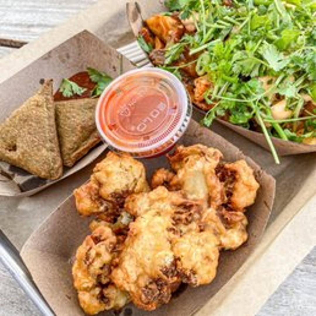 Crispy, savory pastry filled with spiced potatoes and peas. Served with a tangy dipping sauce.