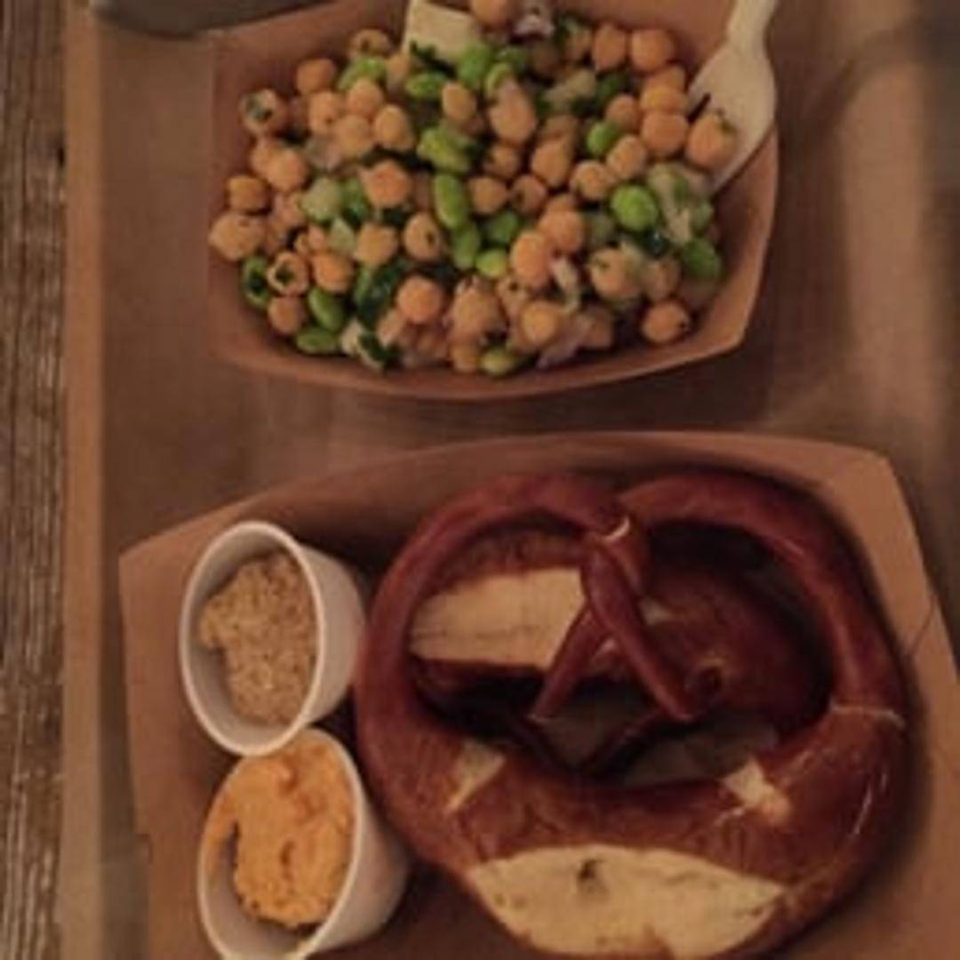 Authentic Bavarian-style pretzels, baked to a dark golden brown with a crispy exterior and a soft, chewy interior. Served warm with a side of house-made beer cheese or spicy mustard.