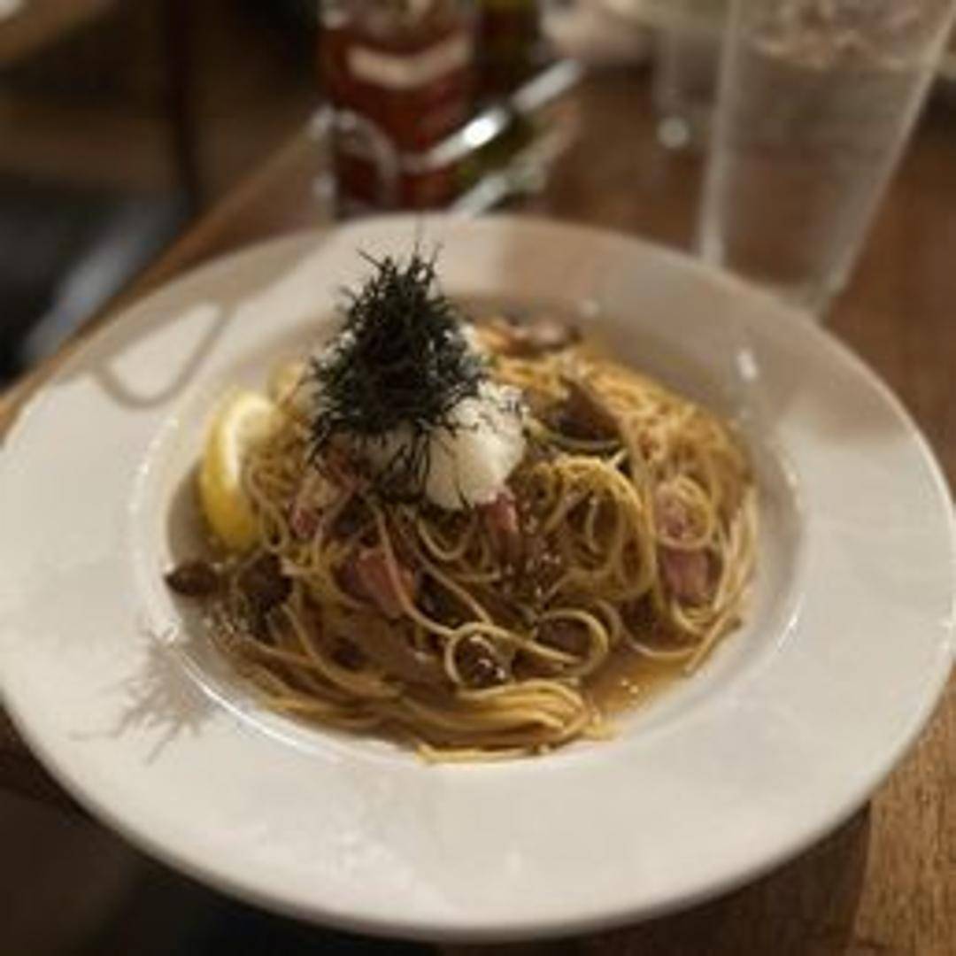 A savory and earthy pasta dish combining crispy bacon and sautéed mushrooms in a creamy sauce. A hearty and flavorful choice.