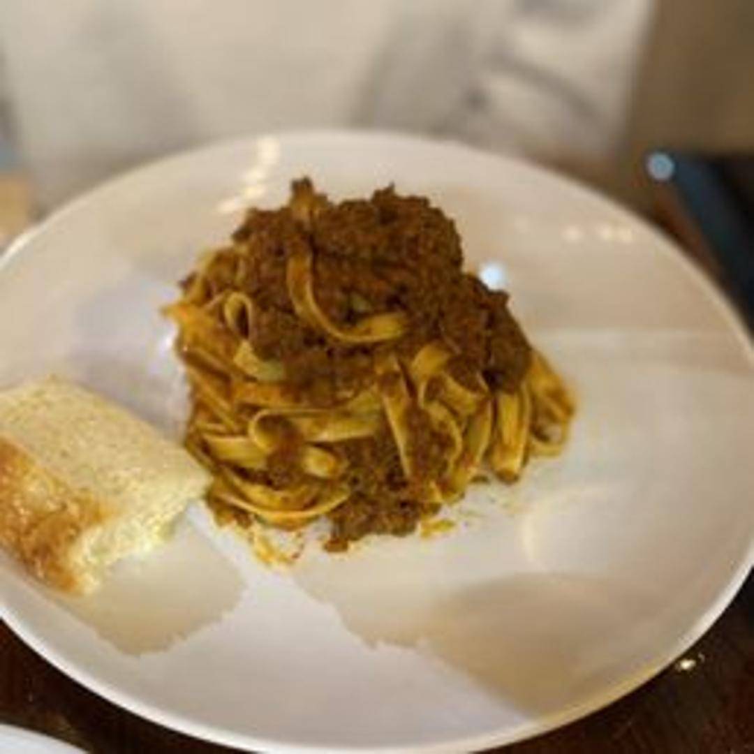 Wide, ribbon-like tagliatelle pasta served with a rich and hearty Bolognese sauce. This classic Italian meat sauce is slow-cooked with ground beef, tomatoes, vegetables, and herbs.