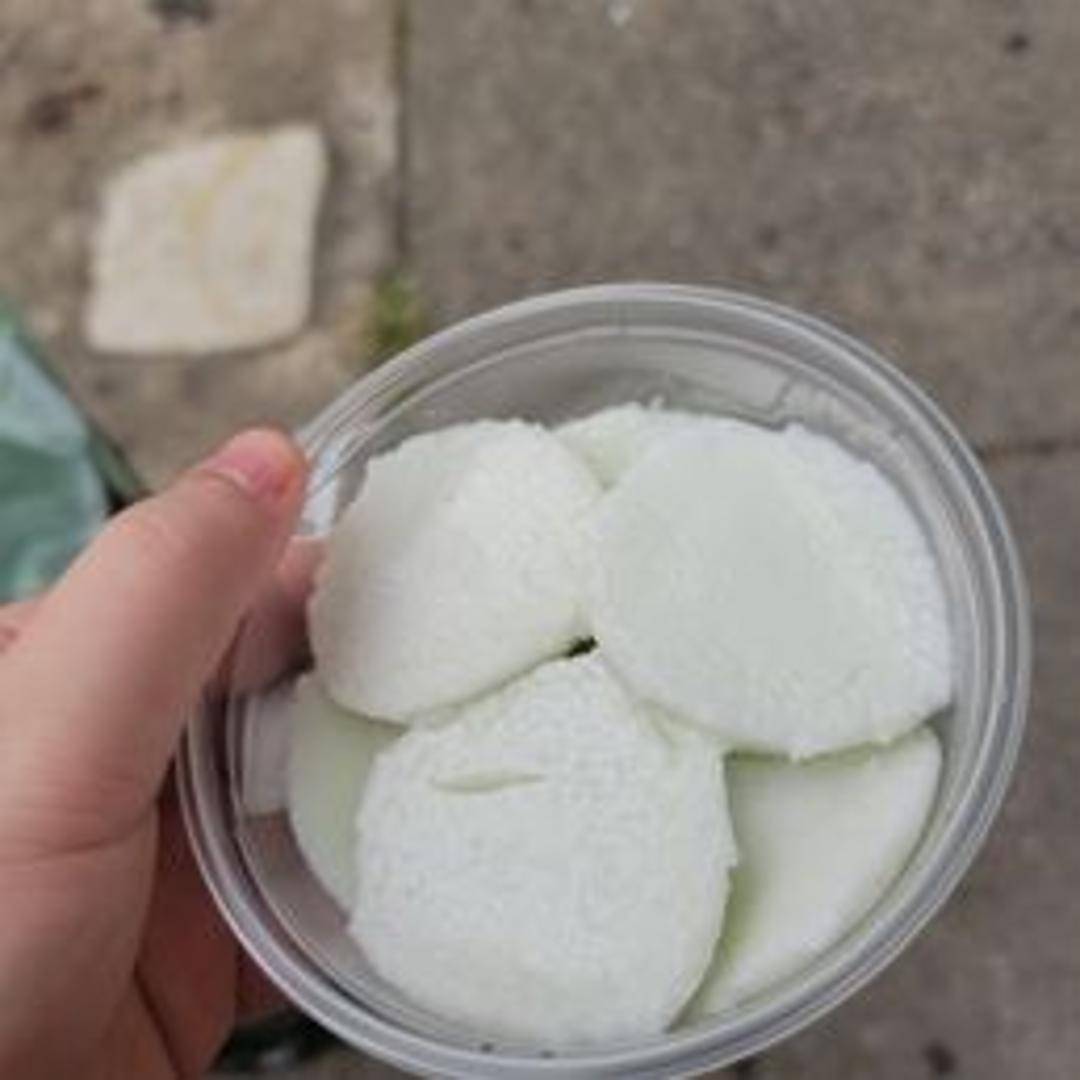 A traditional Thai coconut milk custard steamed in small porcelain cups. It features two distinct layers: a sweet and creamy coconut milk base and a slightly salty and rich coconut cream topping. The contrasting flavors and textures create a delightful and satisfying dessert. Often enjoyed warm or at room temperature.