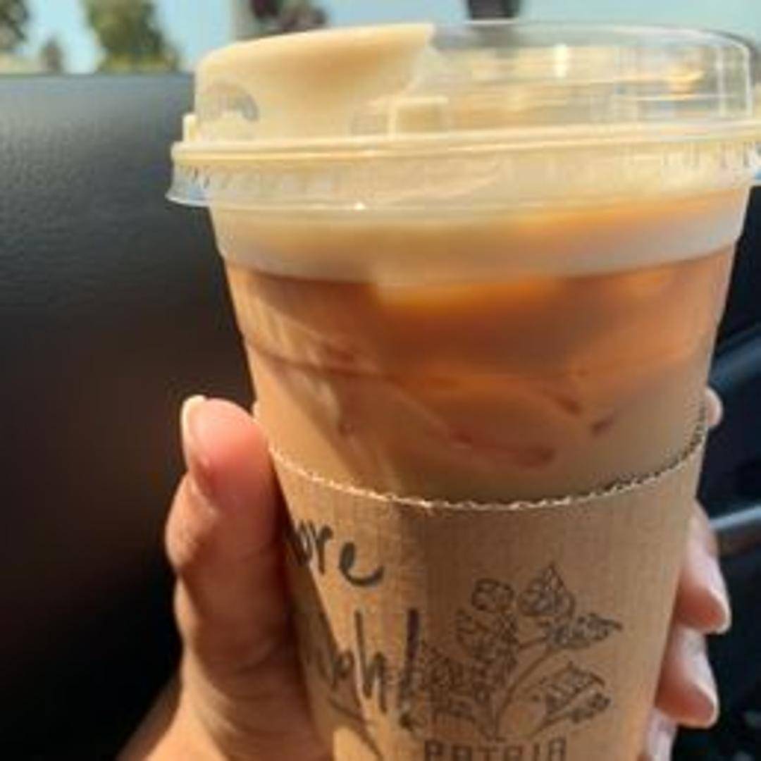 A simple and refreshing coffee beverage, featuring brewed coffee served over ice; a classic and straightforward iced coffee option.