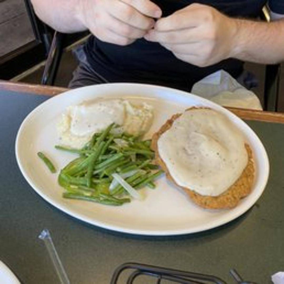 Tender steak, breaded and fried to a golden crisp, smothered in creamy country gravy. Served with your choice of two sides.