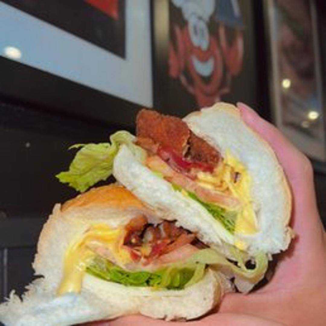 Crispy fried chicken cutlet topped with honey, bacon, cheese (often cheddar or pepper jack), lettuce, tomato, and Pauli's signature killer bee sauce on a toasted brioche bun.