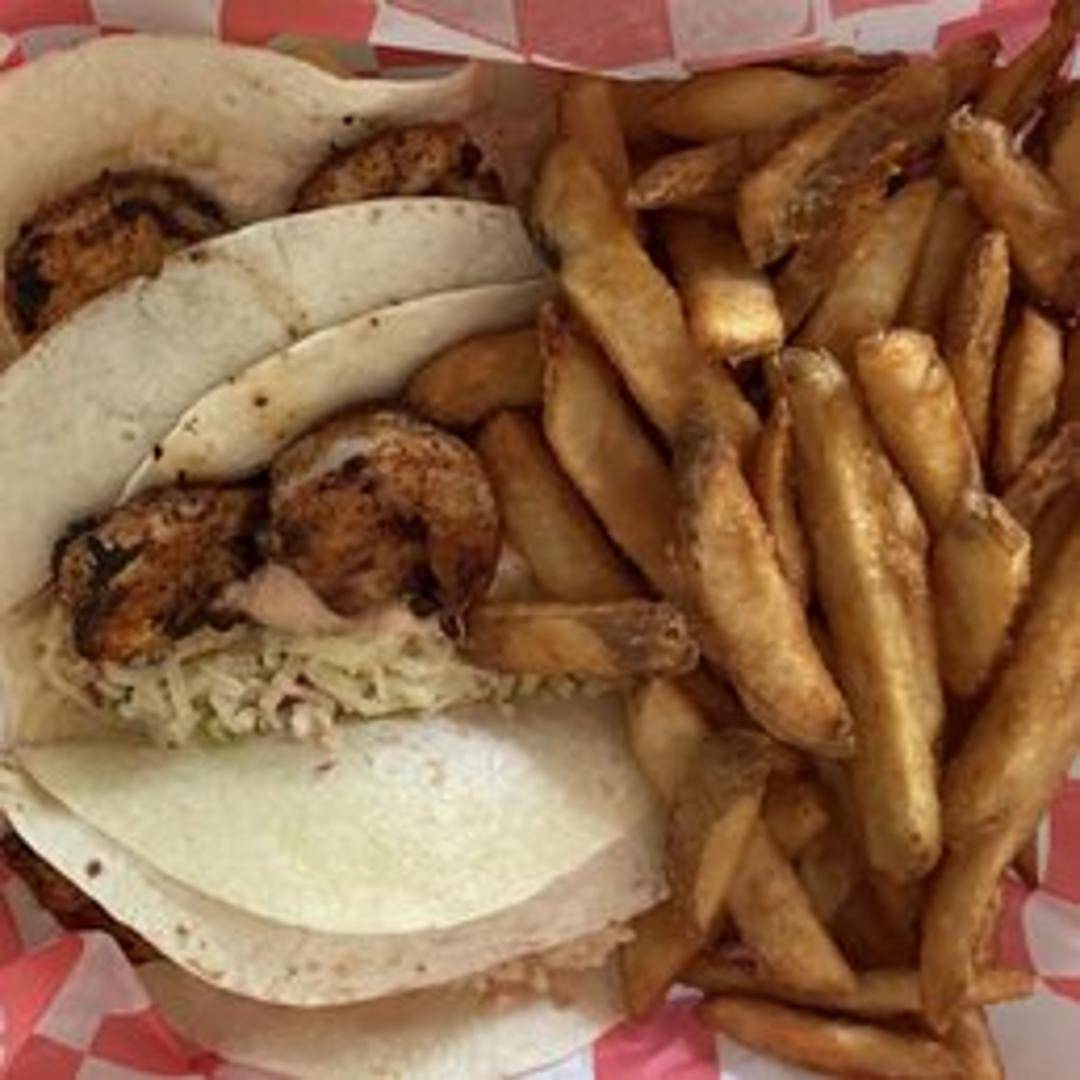 Savory and satisfying tacos filled with plump, succulent shrimp, prepared to your liking – grilled, blackened, or lightly fried. These flavorful tacos are complemented by fresh toppings such as shredded lettuce, pico de gallo, and a creamy sauce, all wrapped in soft tortillas.